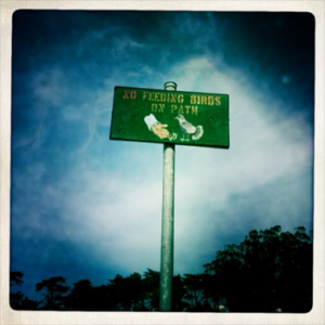 No Feeding the Birds sign at Spreckels Lake. For better or worse, there are a lot of things you can probably get away with in San Francisco–smoking a joint in plain sight on Haight Street, running naked through the streets during the annual Bay to Breakers marathon. Which is why it’s so odd to see a poorly painted wooden sign reminding you not to engage in one of the most intuitive activities known to humankind–feeding the birds.